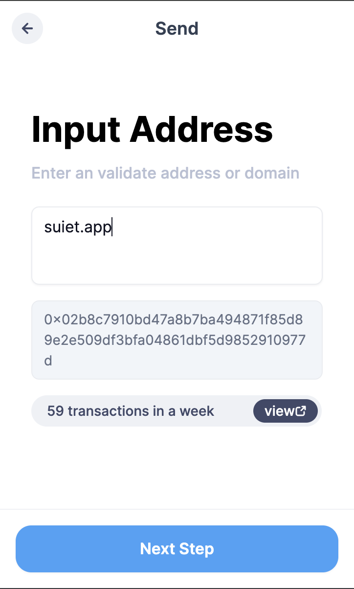 - Transaction Initiation: Suiet will resolve the domain name to the associated Sui address and initiate the asset transfer.